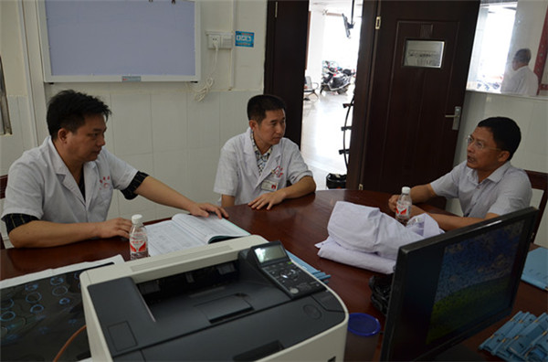 在住院病房内,广西名中医、康复科主任周宾宾和康复科张冲副主任,对崇左市中医壮医医院康复科的疑难病症患者进行了会诊,并对该院康复科的建设和发展提出了参考性意见和建议。