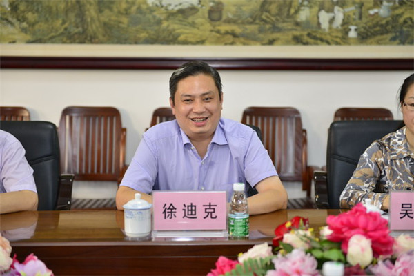 李敏智书记代表一附院领导班子和全院职工对徐县长一行对广中医的信任和名医工作的支持表示衷心感谢,并向徐迪克县长一行介绍了一附院的基本情况。她说:“广中医成立于1941年,有着73年的历史,是一所集医疗、教学、科研、预防保健、康复为一体的现代化大型中医医院,医院拥有广西最强盛的名中医方阵和一批高水平的临床专科、学科和研究室,形成了鲜明的中医和中西医结合特色和优势。正在建设中的建筑面积7万多平米,700张病床规模的仙葫分院和占地106亩的三塘院区医养结合型的老年养护院一旦建成投入使用,必然使医院的整体服务功能更强,为人民群众服务的覆盖面更广。党的十八大提出的“基本建成覆盖城乡、惠及全民的公共文化医疗服务体系”的战略要求,东兰县党委政府对“黄鼎坚基层工作站”的建立给予了很大的支持,一附院对东兰县的中医药事业发展也有着义不容辞的帮扶责任,今后一附院一定会尽最大的努力,推动一附院更多的大师、名医工作室走向基层,更好更广泛地为广大的人民群众服务,帮助东兰县培训中医专业技术人才,同时也欢迎选送医务人员到一附院免费进修学习,与县党委政府一道,共同推进东兰县中医药事业的健康发展。