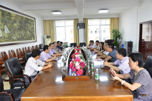 随后,一附院领导与徐迪克县长一行进行了座谈交流。徐县长介绍了东兰县中医药发展的基本情况,他介绍到:东兰县地处桂西北,历史悠久、资源丰富,不仅具有光荣的革命历史,还是传统的长寿之乡。东兰有着非常好的中药资源,目前种植的中草药有三万多亩,主要的药用植物有猫豆、岩黄连、金银花、淮山、黄精、首乌、鸡血藤、山豆根、百合、水槟榔等。然而,东兰县的卫生服务发展相对滞后,全县总病床数800多张,正在建设将于2016年投入使用的东兰县民族中医医院新院也只是在现有的基础上增加了200张病床,达不到国家规定的30万人口配备1200张病床的标准。专业技术人员数量较少,流动性大,存在较大的空缺,且专业技术水平有限,满足不了基层人民群众对中医药的需求,县党委政府也在下大力气改善医护人员的工作环境与待遇问题,争取留住人才。