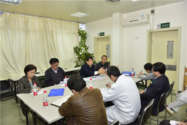 谢胜副院长首先代表一附院对专家组的到来表示热烈欢迎,接着肿瘤科荣震主任对一附院平台建设工作情况进行了汇报。随后,专家组深入到一附院肿瘤科就平台建设总体情况、基本条件、人员培训、网络交流、治疗病历完成情况等方面详细评估了一附院中医肿瘤专科平台建设成效。