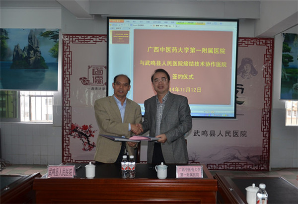 一附院与武鸣县人民医院签约技术协作关系,建立了公立医院改革大潮下综合医院和中医医院合作的新模式,为我院与基层综合性医院的“帮扶进步、协作发展”提供了良好的示范平台。