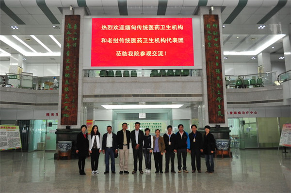 2014年11月13日上午,缅甸传统医药卫生机构代表团和老挝传统医药卫生机构代表团一行9人莅临一附院参观交流。我院团委、药学部、推拿科和壮医科等部门负责人热情接待了代表团一行。
