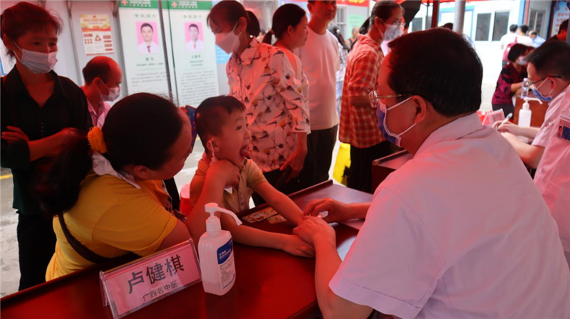 义诊现场,尽管天气炎热难耐,但前来看诊的患者仍络绎不绝,专家们忙得不亦乐乎。卢健棋教授等各位专家对慕名而来就诊的患者通过耐心细致问诊、详细体检、精心辨证论治,且充分结合各自中西医临床经验,出了专业的诊疗意见和中药处方,并对患者进行预防和调护等宣教,此外,多位专家在现场运用针灸、推拿、穴位注射等中医特色技术对患者进行治疗,效果立竿见影,整个义诊活动深受患者欢迎和得到一致好评。