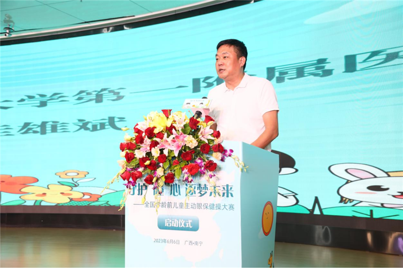 启动仪式上,一附院党委书记桂雄斌发表讲话:“今年是第28个全国爱眼日,我们希望通过今天的活动,共同交流综合防控儿童青少年近视工作经验,未来一附院也将始终重视对学龄前儿童和未近视的群体做好近视防控,让每个孩子都有一双明亮的眼睛和光明的未来!”自治区卫健委疾控处副处长李润泉、自治区教育厅副处长赵彦彦也分别发表致辞并呼吁全社会关注儿童青少年视力保护问题。