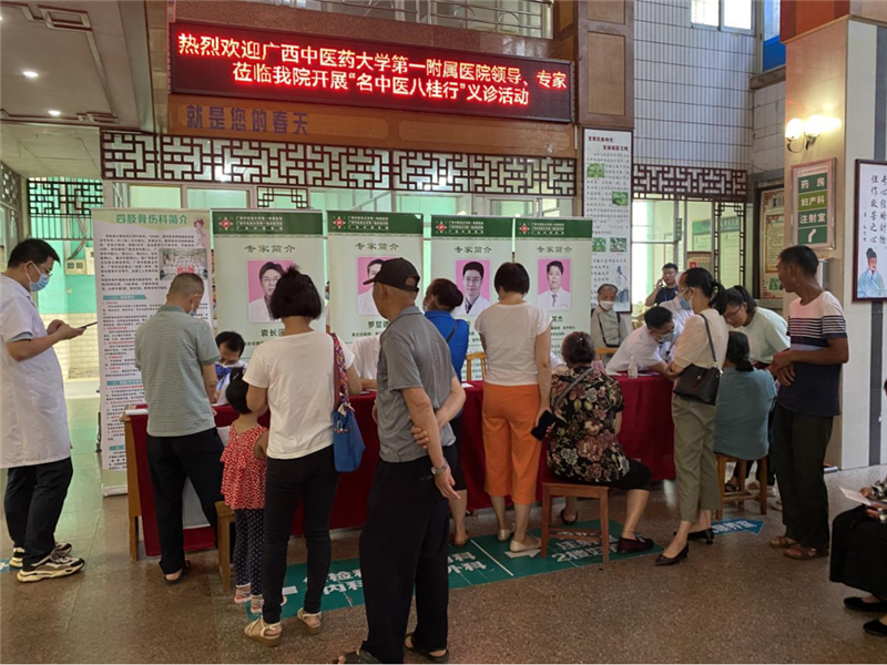 团队还开展了学习贯彻习近平新时代中国特色社会主义思想主题教育主题党日活动,开展大型义诊和健康宣教活动,并免费赠送多种健康宣教资料、特色医院制剂给患者。当地百姓约100人次参与现场活动,再次感受到省会三甲医院的优质中西医协调医疗服务。经双共同努力,此次名中医八桂行活动圆满结束。