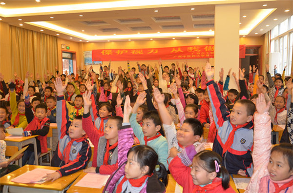 由广西少工委和一附院共同主办的“保护视力,从我做起”眼保健健康宣教活动,于12月9日下午3时,在埌东小学进行。一附院眼科范梓晰、庞运轩、黄柳坪、白娟鲜、江昆等5位医师,为该校三年级的同学进行“保护视力,从我做起”的健康知识讲座及免费视力、屈光检查活动。活动受到埌东小学同学们的热烈欢迎。