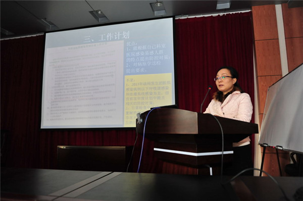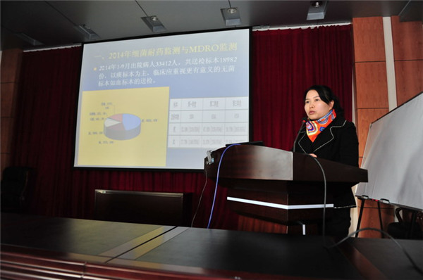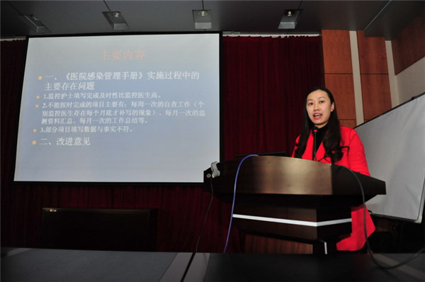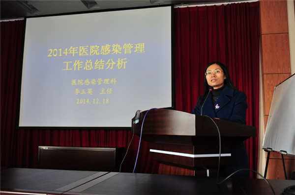 在培训会上,受分管院领导桂雄斌副院长的委托,李玉英主任重点对2014年 全院的医院感染管理工作质量进行了全面系统的总结分析,分别从国家卫计委医院感染管理专项飞行检查情况、传染病医院感染防控工作、中医外治法医院感染管 理、导尿管相关尿路感染防控工作、导管相关血流感染防控工作、消毒灭菌效果监测与手卫生状况、医院感染病例监测与医院感染现患率调查、多重耐药菌监测与防 控、安全注射、医务人员职业暴露监测等十个方面用具体数据和图表进行阐述。各项监测数据和管理资料表明,今年我院医务人员对医院感染管理工作重视程度明显 提高,工作质量得到改善,进一步规范了中医外治法的医院感染管理和导尿管相关尿路感染等防控工作,医院感染管理小组积极开展工作,在应对手足口病、麻疹、 登革热、埃博拉出血热等重要传染病的防控工作中做了大量工作,为医院平安可持续发展作出了贡献。赵莹副主任、陆青老师和关永冠老师分别结合各自分管科室的 情况,对《医院感染管理手册》实施中存在的问题及具体实施要求进行了全面深入的剖析,充分肯定了临床科室在工作项目完成及时性方面取得的明显进步,但在工 作内涵和工作质量上还有待进一步提高。《医院感染管理手册》临床管理模式是我院的特色之一,是推动临床科室开展医院感染管理的一种有效手段,是规范化、标 准化管理的表现,也是促进医院全面进步的重要方式,其涉及的管理内容广泛,涵盖所有重点工作项目,可保证临床工作有序开展,最大程度降低医院感染风险,临 床科室应结合本科室不同阶段的院感特点开展管理。