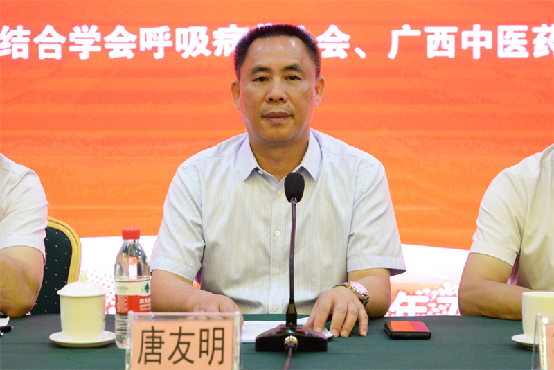 唐友明在致辞中向各位专家同仁对学会工作的支持表示感谢,并简要介绍了医院的基本情况。他指出,附属瑞康医院一直以来高度重视呼吸疾病学科的建设和发展,今年荣获了国家呼吸与危重症医学科规范化建设三级医院优秀单位、广西呼吸专科护士临床培训基地单位,标志着医院呼吸与危重症医学科的建设规模、开展项目及治疗水平均处于国家及自治区级的领先地位。同时,作为自治区中医肺病医疗质量控制中心,医院牵头制定了中心章程、管理办法、中医肺病质控规范细则,并对区内多家中医院肺病科进行了调研、指导。下一步,医院将进一步完善质控中心各项标准的制定,努力推动中医肺病医疗质量的提高,继续搭好专科平台,做好沟通桥梁,通过“请进来、走出去”的方式,积极推广中医肺病诊疗规范及医疗技术,为自治区中医药事业发展,为“健康中国”战略实施贡献瑞康力量。