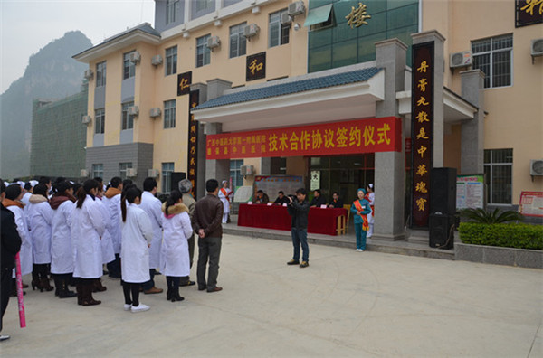 1月15日-16日,一附院组织专家博士团一行15人,由桂雄斌副院长带队到德保县中医医院开展专题讲座、业务查房、座谈交流、技术协作医院签约挂牌等活动。此次两院结对,得到德保县政府高度重视,县政府何昌义副县长出席签约仪式,并为技术协作医院揭牌。