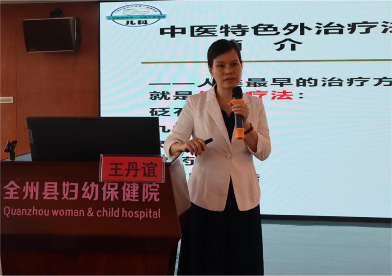 名中医团队还进行了学术讲座交流。儿科王丹谊副主任进行题为《浅谈中医特色外治在儿科临床的应用》的专题讲座,系统阐述了中医特色外治疗法的特点、小儿常用药物及非药物外治疗法的运用及临床疗效。妇科郭华主治医师进行《中医妇科舌象的应用》的专题讲座,以中医舌象为基础,结合妇科临床疾病,详细讲解舌象在中医妇科中的具体应用以及注意事项。