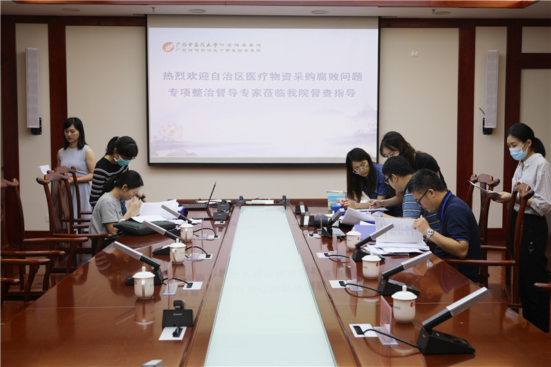 7月27日,自治区中医药局二级巡视员黄明瑞带领自治区卫生健康委医疗物资采购腐败问题专项整治工作督导组第六组第三小组一行4人到我附属瑞康医院开展医疗物资采购腐败问题专项整治工作督导检查。医院院长唐友明,纪委书记黄建民以及相关职能科室人员陪同检查。