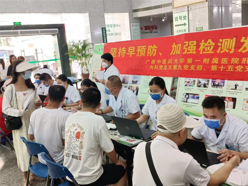 为提高公众对肝炎的认识和重视,加大肝炎知识传播力度,提高诊断筛查率,积极防治肝炎,降低肝炎的发病率和病死率。中国中西医结合学会肝病分会,广西中西医结合学会肝病分会,广西中医药学会肝胆病委员会,星空彩票老版本下载第一附属医院组织肝病专家,于7月28日开展“世界爱肝日”义诊活动。