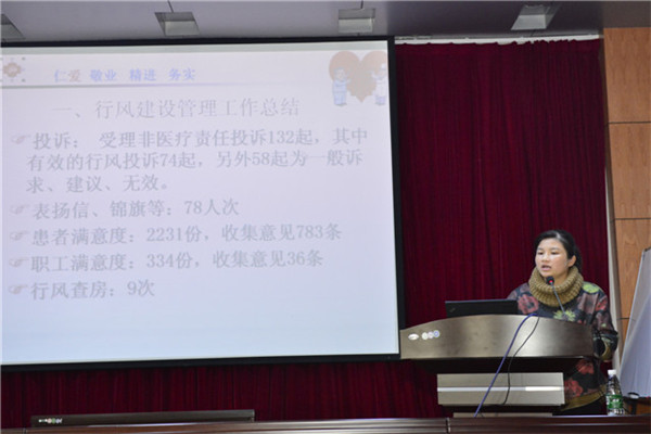 最后,黄贵华院长指出在全院员工的共同努力下,2014年一附院取得了很好成绩,并强调在成绩面前也要看到不足,今天的各项工作总结是为了发扬成绩,改进不足,扎实开展2015年医疗业务工作。医疗质量安全与医务人员责任心息息相关,医务人员在提高医疗技术同时一定要强调各科室主任要持续严抓医疗质量和医疗安全的落实,为群众提供更安全、优质的医疗服务。