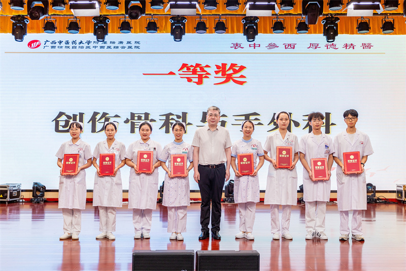 经过激烈的角逐,创伤骨科与手外科赵婷婷老师团队荣获一等奖,手术麻醉科刘婉吉老师团队、肾病内科王艺老师团队荣获二等奖,重症医学科二区黄秋妹老师团队、修复重建显微外科邓丽吉老师团队、关节与运动医学科韦萌老师团队、康复医学科农莉娜老师团队、放疗科黄雪梅老师团队荣获三等奖,三个学生团队获得优秀学生团队奖。