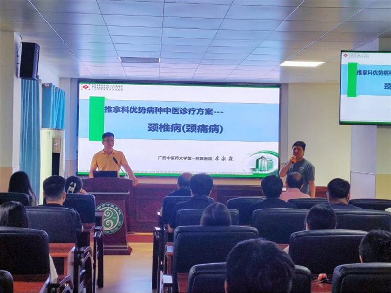 8月18日下午,黄锦军名老中医传承工作室团队的李宗霖副主任医师在会议室为医院职工作《推拿科优势病种中医诊疗方案——颈椎病(颈痛病)》专题讲座。