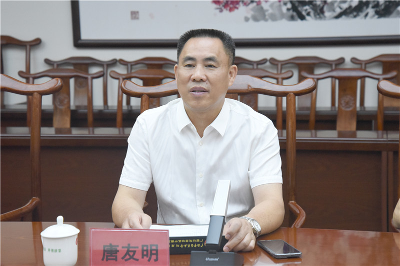 随后,唐友明向方植勋赠送纪念品,并合影留念。