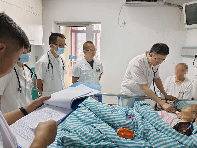团队专家分别到心内科进行教学查房,在教学查房活动中,黄夏冰、谭炜副主任医师对患者的诊断、治疗方案及目前存在的问题给出专业指导,得到科室医护和患者的充分认可。韩海涛副主任医师、王馨苑讲师在针灸推拿科针对数个疑难病人的诊断、选穴和针刺手法做出了详细的讲解和示范,手把手带教,给针推科的医护人员带来新诊疗技术。