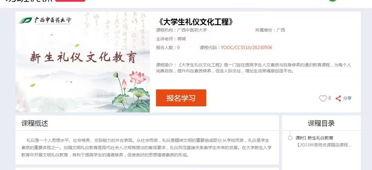 2023年度易班优质公开课征集评选活动是面向全国易班共建高校发起的,面向全国征集以高校新生入学教育、高校日常思政教育、大学生职业素养教育、大学生心理健康教育、大学生安全教育等5项专题内容为主的视频课程,每个分类评选出10部精品课程,总计50部。本次活动共有94所高校535部课程参赛,64.31万名大学生总计投票108.94万次。其中,蒋娴老师的作品《大学生礼仪文化工程》在535部课程中脱颖而出,荣获大学生职业素养教育专题二等奖。