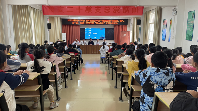 为推进健康中国建设, 11月15日上午,一附院外科党总支第四、第八、第十四党支部及仙葫院区党总支第十二党支部联合共建,前往隆安县南圩镇杨湾中心小学开展“医心向党,守护师生健康”义诊及健康科普宣传活动。