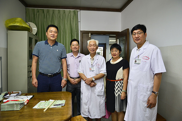 桂副院长高度赞扬了四位老专家虽年逾古稀,但依然坚守在临床一线上,为祖国传统中医药的传承与发展做出积极的贡献。除了日常出诊,还通过口授心传,个别指导,将自己多年的临床经验无私地毫无保留地传授给年轻医生,使他们少走了弯路,缩短了成长的周期,为中医药事业的继承和发展培养了优秀人才。桂副院长语重心长地感叹:希望跟师的学员能够珍惜这难能可贵的机会,认真学习老师的学术思想和诊疗经验,不辜负一附院和老师的期望。最后桂副院长一行关切地嘱咐老专家一定要保重身体,同时与四位老专家合影留念。