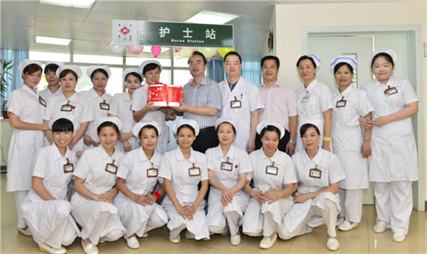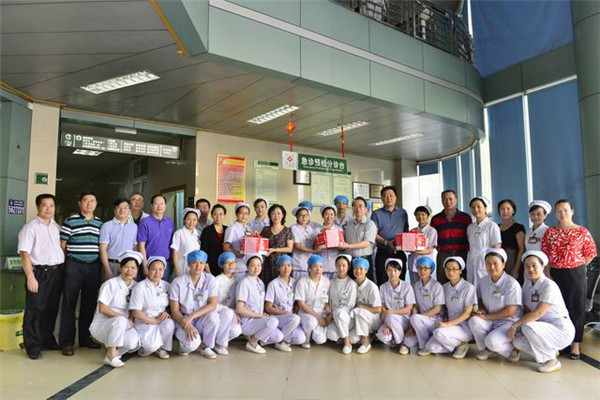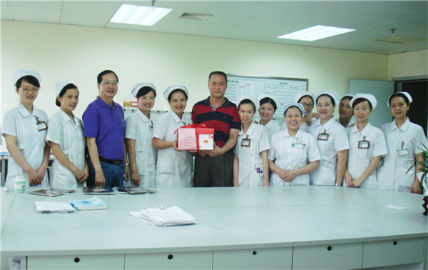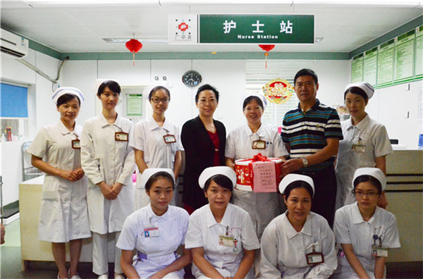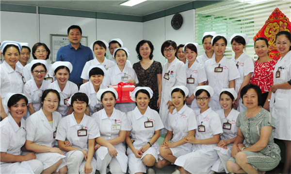 “5.12”国际护士节这一天一附院处处洋溢着欢声笑语。上午八点,一附院院长黄贵华、党委书记李敏智、党委副书记、纪委书记、副院长吴西西、副院长卢健棋、桂雄斌、谢胜、周建国、钟远鸣带领各职能科室主任一行十余人分别前往各科室,向工作在临床一线的白衣天使们送上节日蛋糕,并致以亲切的问候和衷心的祝福。一附院领导对护士们的辛勤工作表示衷心的感谢,同时勉励一附院护士要结合一附院实际情况,突出一附院中医护理特色,在今后的工作中再接再厉,继续发扬南丁格尔精神,将“爱心、耐心、细心、责任心”传递给每一位患者。温馨的问候,浓浓的关爱,亲切的鼓励,温暖了每一位护士们的心田,大家表示要用真诚和爱心,用热情和关怀,为患者提供贴心服务,打造广中医护理新气象,让广中医优质护理服务工作深入人心。