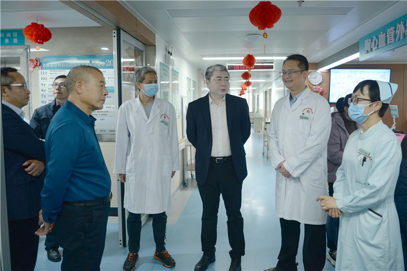 “新年好!”每到一处,医院领导都对春节期间坚守岗位的医务人员表示节日的问候和衷心的感谢,感谢大家在节日期间,无私奉献,忘我工作,为保障人民群众的生命健康及医院的医疗安全作出了贡献。