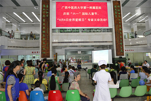此次义诊活动得到一附院领导的大力支持,副书记吴西西做了精彩的演讲,并宣布义诊活动开始。义诊活动在一附院门诊大堂举行,当天还没到规定义诊时间就已经有很多家长带着孩子远道而来,急切的想了解孩子的病情,儿科专家及眼科专家耐心细致的为前来咨询的儿童家长解答病情,并为儿童保健及治疗、康复提供科学的建议和指导,并为儿童进行视力检查、验光、眼病筛查。会场同时还举行了儿科伏九贴敷宣传及有奖问答活动。小朋友们更是兴高采烈的参加了夹弹珠运气球比赛等游园活动,领取了丰厚的奖品。整个会场人头攒动,气氛热烈,洋溢着祥和、欢乐的氛围,发放的儿童学习用具、儿童玩具等超过300份。