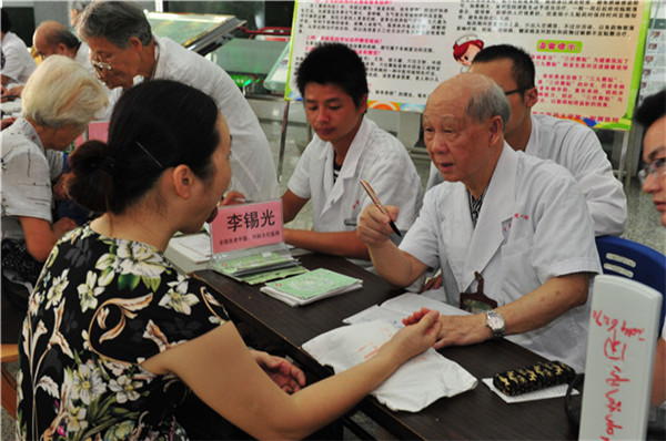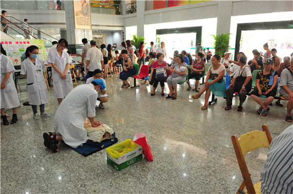 参加此次义诊的专家由八桂名医馆、壮医科、男科、美肤科、眼科和急诊等科室的党员同志组成,其中既有全国名老中医、广西名老中医、也有朝气蓬勃的新党员,既有年轻骨干医生,也有学生党员志愿者。义诊刚开始,前来就诊的病友们就在宽敞明亮的大堂候诊区排好了整齐而有序的队伍,参加义诊的专家们精神饱满,诊疗技术精湛,工作态度认真细致,深受患者信任和欢迎。此外,急诊科的医务人员还在现场为广大市民示范和讲解了现场急救技术,徒手心肺复苏术,引导大家踊跃参与,并与现场的群众热烈互动,吸引了不少群众争先恐后亲自在模拟人上进行急救模拟操作,并认真询问操作程序及要点,达到了良好的卫生急救知识的普及效果,提高了大家的徒手救助能力和水平。
