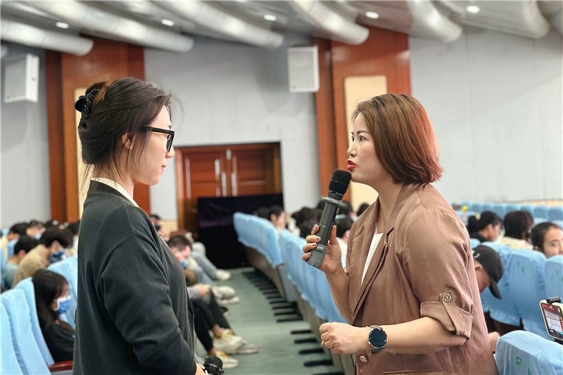 讲座伊始,陈佩嘉开展互动热场游戏,同学们在动感、活跃的音乐声伴随下,释放压力、表达情绪,互动交流。以此为切入,陈佩嘉从认识情绪到如何做情绪的主人剖析了目前实习医学生们的困惑,引导同学们学会释放压力的正确方法。同时运用游戏互动、案例分析、专业知识印证等形式,让同学们掌握了缓解医患关系的沟通技巧。本次讲座内容丰富,让同学们在轻松、愉悦的氛围之中感受到了心理减压赋能的温度和深度。