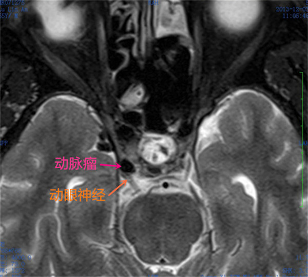 术前MRI右侧动眼神经受压