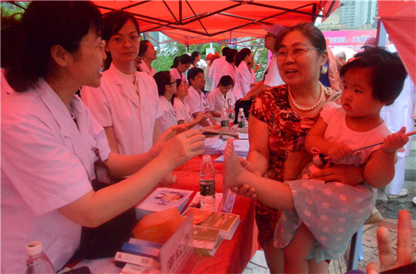 2015年9月12日是第11个“中国预防出生缺陷日”,为宣传普及出生缺陷防治知识,在全社会营造重视和支持出生缺陷防治工作的良好氛围,自治区卫生计生委、自治区残疾人联合会在南宁市金湖广场举办以“防治出生缺陷,关爱患病儿童”为主题的出生缺陷预防宣传周活动,自治区卫生计生委、南宁市政府有关领导出席宣传活动并讲话。一附院由产科、儿科、眼科和预防保健科等科室医务人员组成的医疗小组及文艺表演队参加了义诊宣传活动并进行文艺演出。
