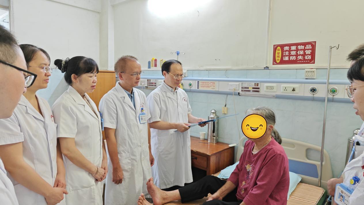 6月8日上午,义诊活动在博白县中医医院门诊部进行,前来看诊的群众络绎不绝。庞学丰教授团队成员为前来咨询、就诊的群众问诊查体,开具处方,提供合理化、个性化的中医用药、治疗意见及中医养生等专业指导。患者及家属表示非常高兴在家门口就能享受到与三甲医院专家“面对面、一对一”的诊疗服务。本次活动为本地患者提供免费诊疗,发放中医健康科普材料100余份。随后,专家团队还深入内三科病区进行教学查房及疑难病例讨论。