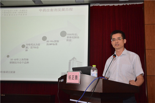为促进全区中药注射剂临床应用规范化,进一步提高临床使用中成药安全、有效,加强学术交流,一附院于2015年10月29-30日在医技楼七楼第一会议厅成功举办了区级医学继续教育项目“中药注射剂临床安全性应用规范化培训班”。 一附院院长黄贵华教授、广西中西医结合学会李方教授、广州中医药大学第一附属医院唐洪梅处长等领导出席了培训班开幕式。来自区内各医院的医务、临床、药学等方面共100余人参加,会议由药学部杨正腾副主任主持。