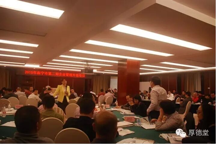 2015年11月12日至15日,制药厂厂长何天富、副厂长陈洪涛、覃明雄及相关职能部门负责人等一行共6人组队参加了南宁市人才办、市工信委、市国资委、高新区管委会联合主办、由南宁市厚德堂企业顾问有限公司承办的“2015年南宁市第二期企业管理升级项目”的集中培训。该项目是市委、市政府大力实施“工业强市、产业旺市”战略和“抓大壮小扶微工程”的工作要要求。项目共分为走访调研、集中培训、辅导制定瓶颈突破方案、帮助企业在100天内顺利执行瓶颈突破方案等三个阶段。