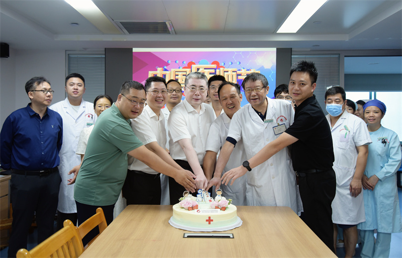 当天上午,全体院领导分别带领相关部门负责人来到各个科室,看望慰问奋斗在一线的医师们,为大家送上节日蛋糕和祝福。院领导和医师们亲切交谈,感谢他们一直以来辛勤工作、默默付出,为人民群众的身体健康和医疗卫生事业的发展作出卓越贡献,并鼓励大家在奋斗之路上不懈进取,在新时代新征程上继续担负起守护人民健康的重要使命,为医院的高质量发展努力奋斗。