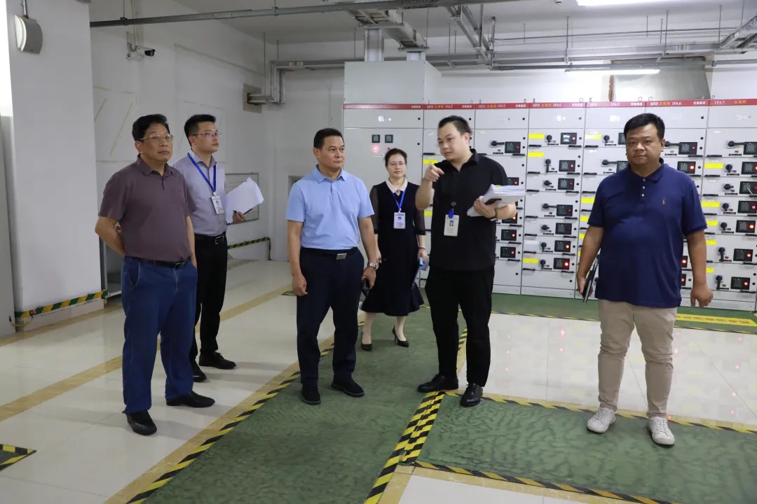 院长黄国东,副院长、总会计师庞刚在配电室了解用电情况