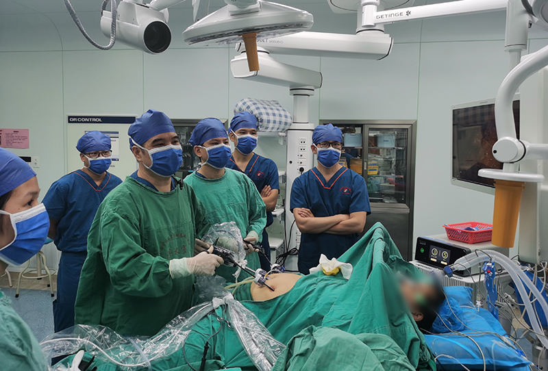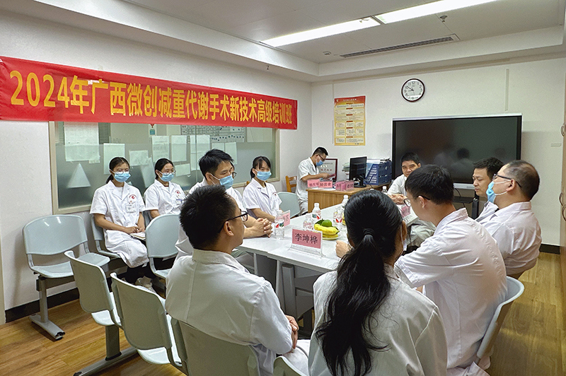 本次培训班为期2天,以线上、线下相结合的方式进行,由医院胃肠外科、减重代谢手术中心承办。来自广西医科大学附属武鸣医院、梧州市中医医院、武鸣区中医医院、南宁市第十人民医院等8家医院的16名医护骨干参加线下培训,近100名广西各医院的普外科同行在线上观看手术直播。