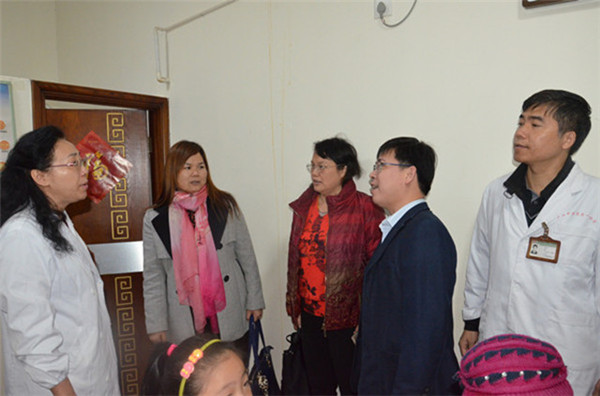 2015年12月3日,广西红十字基金会秘书长龙军胜率宾阳红十字会医院、平南红十字会医院、环江妇幼保健院等单位到一附院考察学习天使计划“光明行动”的开展情况。一附院党委副书记、纪委书记、副院长吴西西会见来宾。
