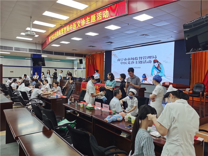 9月13日上午,第一附属医院外联拓展部组织医护专家团队,赴南宁市市场监督管理局,为职工送去中医药健康义诊服务。