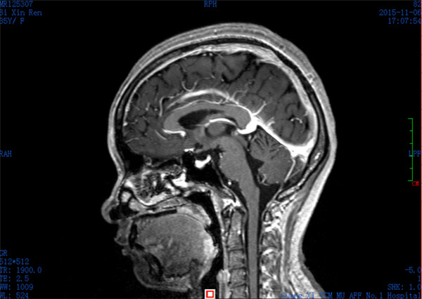 经与患者及家属充分沟通并获得同意后,外六科脑血管病介入治疗团队立即为患者行全脑血管造影,造影结果证实上矢状窦血栓形成,整个上矢状窦完全闭塞,若不采取措施病情很快就会恶化。再次征得家属同意后果断采取微导管介入手术治疗,手术在起病后当晚开始,由于患者血栓位置深在,需要经动、静脉双重途径置管,技术难度较大。术者选取Solitaire支架( 美国 公司)置入微导管远端,释放支架并在原位作短暂停留使支架与血栓充分接触并黏附,一起回撤支架与微导管取出血栓,手术一直持续到第二天凌晨。术后留置导管一条,用于每天以药物继续溶栓。术后患者即清醒,头痛明显缓解,无神经功能缺失。手术第二周时患者已经能够生活自理。2015年12月12日患者痊愈出院。