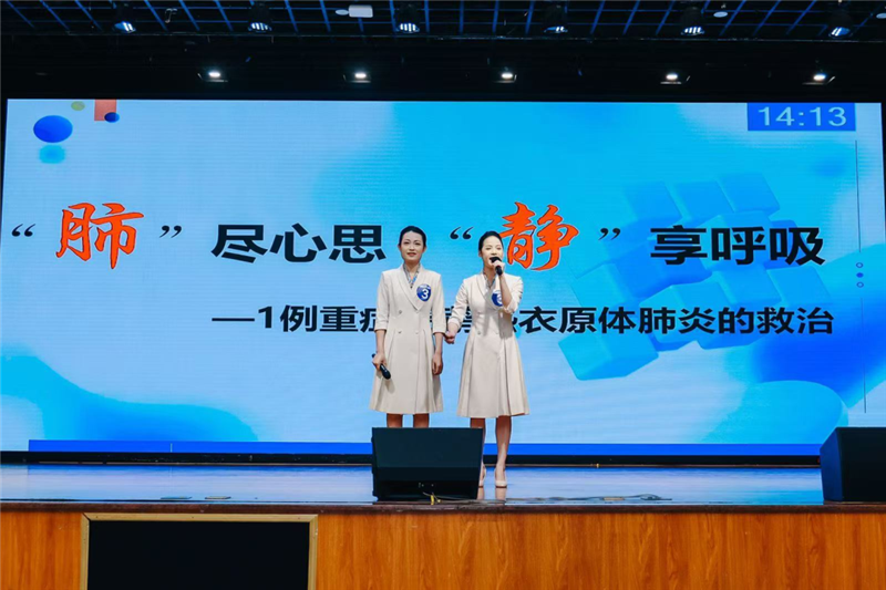 决赛中,医护团队以《“肺”尽心思,“静”享呼吸——1例重症鹦鹉热衣原体肺炎的救治》为题讲述一例鹦鹉热患者跌宕起伏的救治过程,呈现了医护团队通过舒适化镇痛镇静、中西医结合诊疗方案、中医特色康复训练,成功使患者康复出院的故事。医护团队默契配合,凭借精彩的救治案例获华南赛区决赛二等奖。
