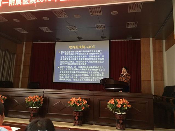 赵莹副主任对2015年全院医院感染管理工作质量进行总结分析,详细报告了各类监测和管理数据,指出2015年在一附院各科室的大力支持和临床科室医院感染管理小组成员的密切配合下,一附院医院感染管理工作在各方面均取得了较好成绩,医院感染发病率、消毒灭菌效果与环境卫生学监测结果等各项指标符合国家相关规定,全院医务人员院感防控意识、手卫生依从性和多重耐药菌感染防控管理得到强化提高,希望大家再接再厉,快速适应医院感染工作信息化管理的新模式,按照工作部署做好2016年医院感染管理各项工作。