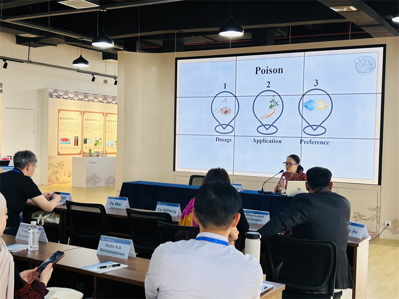10月30日,研修班在中国—东盟技术转移中心中医药大健康产业展示厅举行了开班仪式。附属瑞康医院刘偲翔副主任中药师以《药食同源-中华传统文化中的食治》为题,为远道而来的学员们进行了精彩的培训。刘偲翔详细介绍了中国以食疗疾的历史、原理以及季节养生知识,让学员们对中国的饮食文化有了更深入的了解。此外,医院药膳小组还特别展示了具有广西特色的“桂药膳”菜肴和药膳零食,组织了时令节气的桂药膳品尝体验活动,并宣传了药膳制作的标准化流程,以更直观、更亲切的方式让学员感受节气饮食之理、之美、之韵。