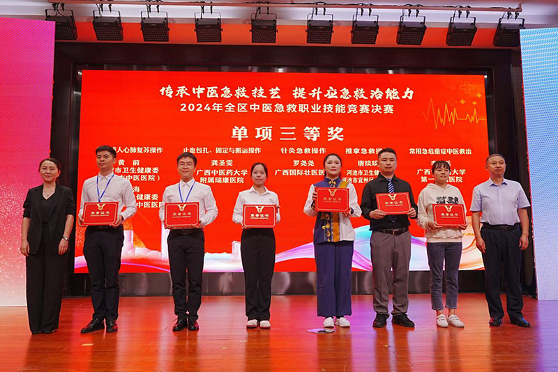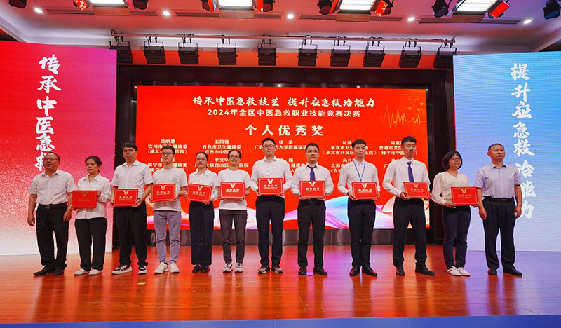 11月12日至13日,由自治区卫生健康委、自治区中医药管理局、自治区总工会主办的2024年全区中医急救职业技能竞赛决赛在柳州举行。比赛旨在提升中医急救专业技能,规范操作流程,确保医疗质量和安全,同时弘扬劳模精神和工匠精神,营造追求卓越的职业氛围。共有来自全区14个设区市及9家区直医疗机构的23支参赛代表队、46名选手同台竞技,充分体现了中医与现代医学在急救领域的高度融合。
