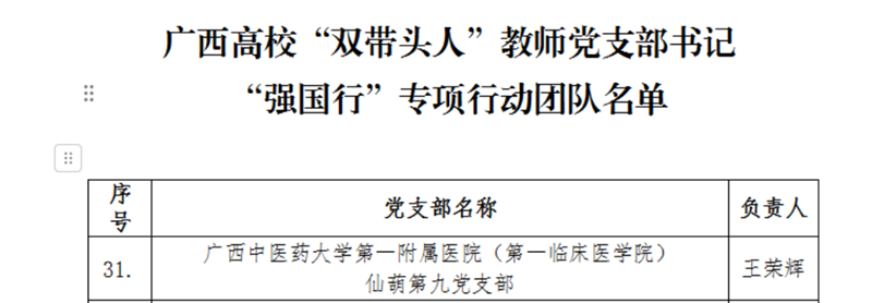 喜报!第一附属医院仙葫院区第九党支部获评广西高校“双带头人”教师党支部书记“强国行”专项行动团队