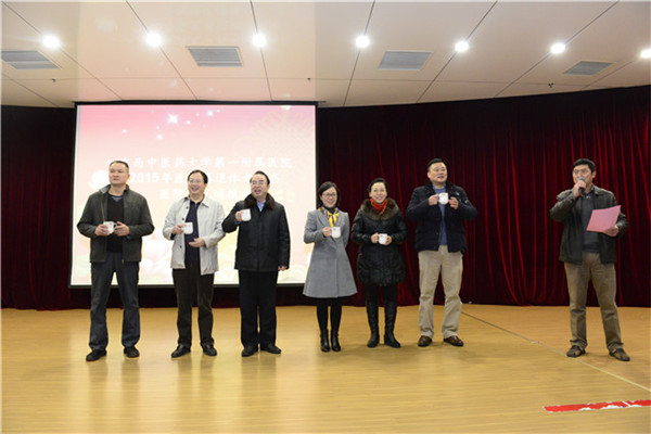 李书记最后说,2016年是“十三五“的开局之间年,一附院将继续深入贯彻党的十八大精神,继续贯彻落实国家深化医药卫生体制改革规划,在学校党委的正确领导下,按照“扭住关键,精准发力,严明责任,狠抓落实”工作思路,以只争朝夕、勇于担当的精神,以更加务实的工作作风,担当好一附院改革和发展的各项新任务、新挑战,推动一附院事业再上新台阶。衷心希望老领导、老专家、老前辈、同志们一如既往地支持一附院工作,为推动一附院高质量持续发展发挥余热。并代表一附院党委、行政向各位老领导、老专家、老前辈拜个早年,向各位老领导、老专家、全体离退休老同志及家属们致以最诚挚的节日问候和最美好的新年祝福!祝大家新年快乐,身体健康,万事如意,阖家幸福!