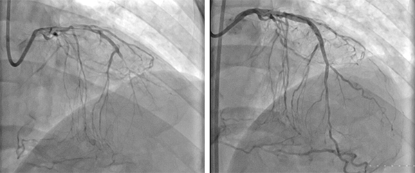 入院后,经进一步的观察发现,兰先生心脏冠状动脉左前降支和左回旋支近端均为弥漫性狭窄,中段完全闭塞;右冠中段狭窄程度达到95%,远段完全闭塞!病情严重,何主任带领心血管内科医疗团队,经过周密准备,制定详细手术计划,先后于1月19日和1月26日成功完成了两次“CAG+PTCA+支架植入术”,通过导管将支架植入左冠状动脉前降支和回旋支关键位置,消除这两支冠状动脉的狭窄症状,经过反复观察造影显示,支架贴壁良好,无残余狭窄,无夹层无撕裂,血管大小及血流状况恢复到正常水平,手术成功!兰先生目前病情恢复良好,待年后再次手术解决右冠状动脉症状之后,即可达到较为满意效果。