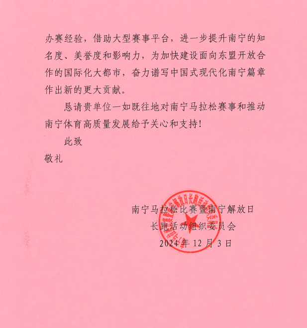 【喜讯】一封来自南宁马拉松组委会的感谢信!