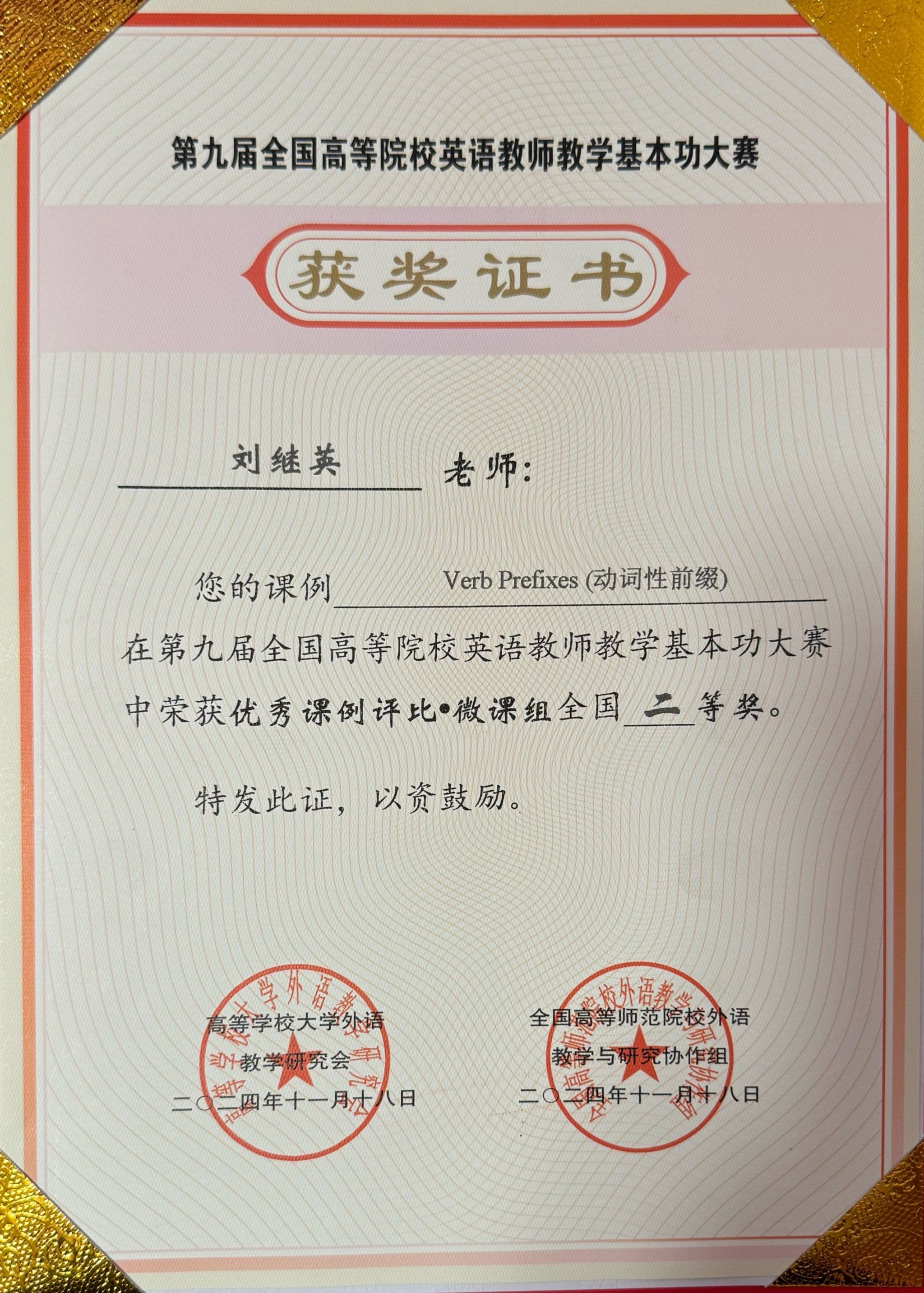 【喜讯】国奖再+1 赛院教师荣获第九届全国高等院校英语教师基本功大赛微课组全国二等奖