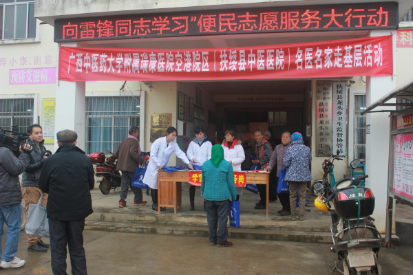为传承雷锋精神,更好地为广大基层群众提供医疗服务,2016年3月17日上午,星空彩票老版本下载附属瑞康医院空港院区(扶绥县中医医院)副院长黄适带领由脾胃病科、骨脊柱科专家组成的医疗队走进扶绥县龙头乡卫生院,开展 “中医名医名家走基层行动”。